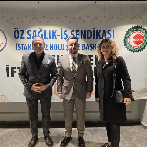 Sendikamız Genel Yönetim Kurulu Üyesi ve İstanbul Avrupa Bölge Başkanı Dr. Mümin Evren, Sendikamız İstanbul Anadolu Bölge Başkanı Abdulcelil Güven, Öz Sağlık İş Sendikası İstanbul 2. Nolu Şube Başkanı Erdem Dinç'in iftar davetine katıldı.