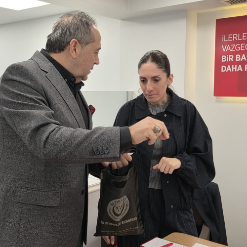 Genel Başkanımız Ahmet Eroğlu'nun selamlarını ileten Güven, Şube Çalışanlarına ve Üyelerimize sendika çalışmaları ile ilgili bilgilendirmede bulundu, öneri ve istekleri dinleyerek not aldı.